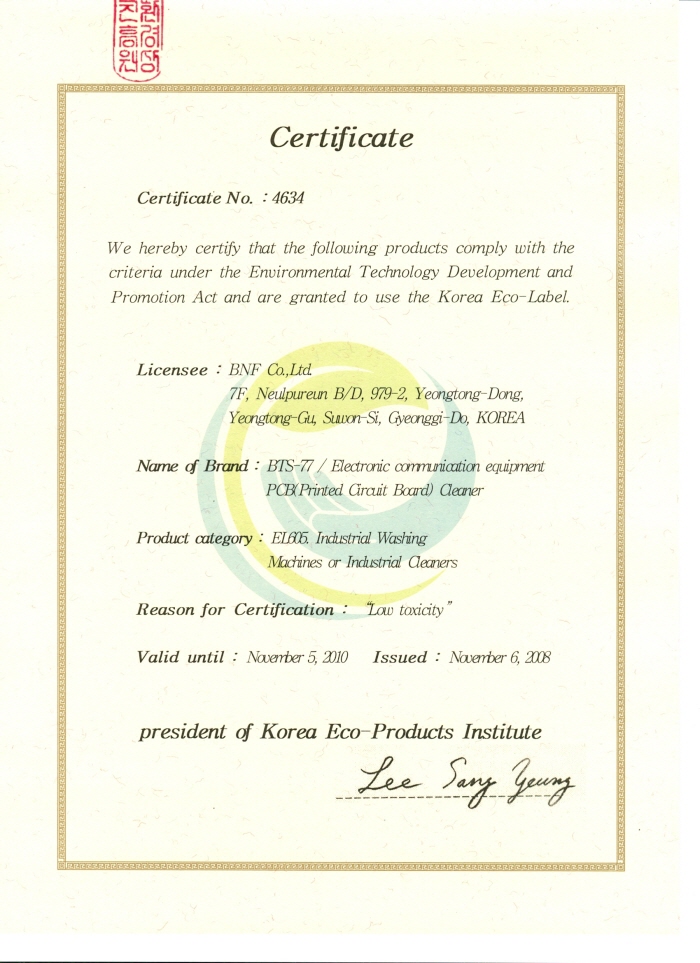 and has been awarded patents, NEP, EPC and Eco-label certifications from Korean government
