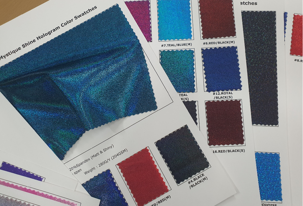 - Foil fabrics and Hologram stretch for in-house Printing.